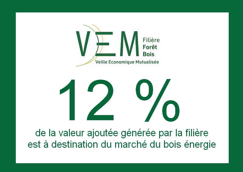 En 2023, la part de valeur ajoutée à destination du marché du bois énergie représente 12 % de la valeur ajoutée totale de la filière forêt-bois française.