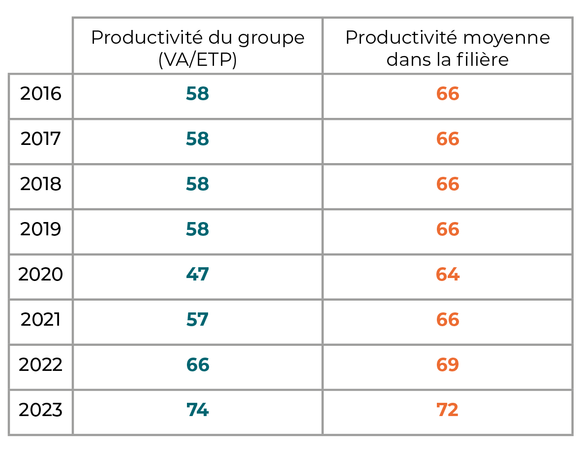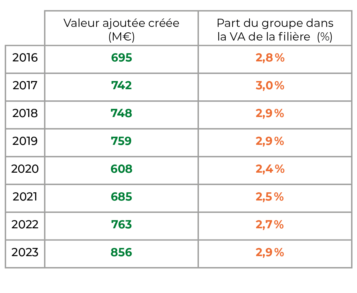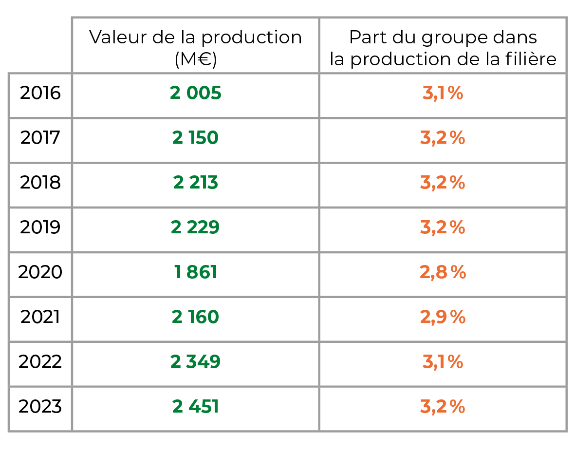 Le taux d’export est le ratio export sur production. Il met en évidence la propension à exporter du groupe. Le taux d’export n’est pas pertinent pour les commerces qui sont considérés comme un intermédiaire.