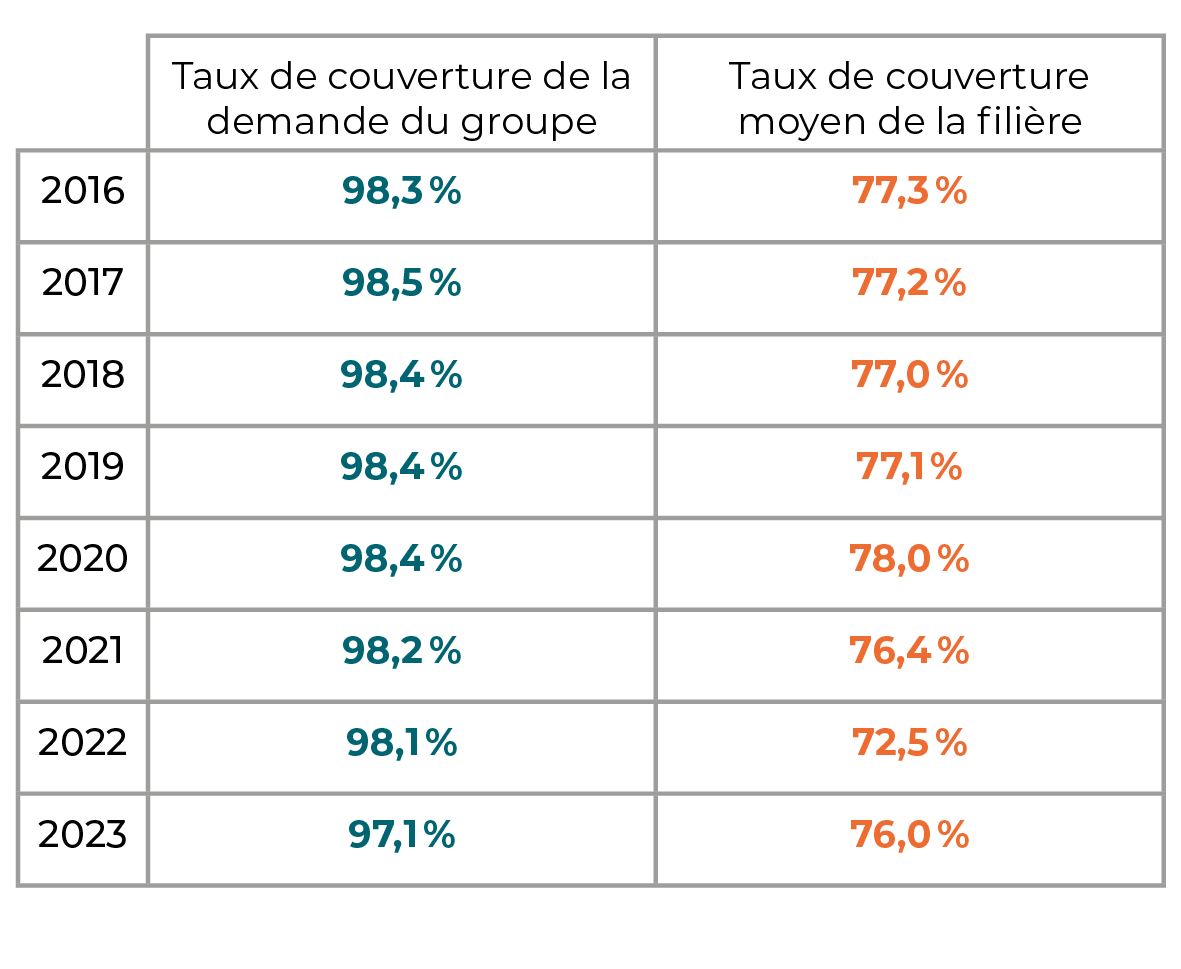 Taux de couverture de la demande par l'offre nationale